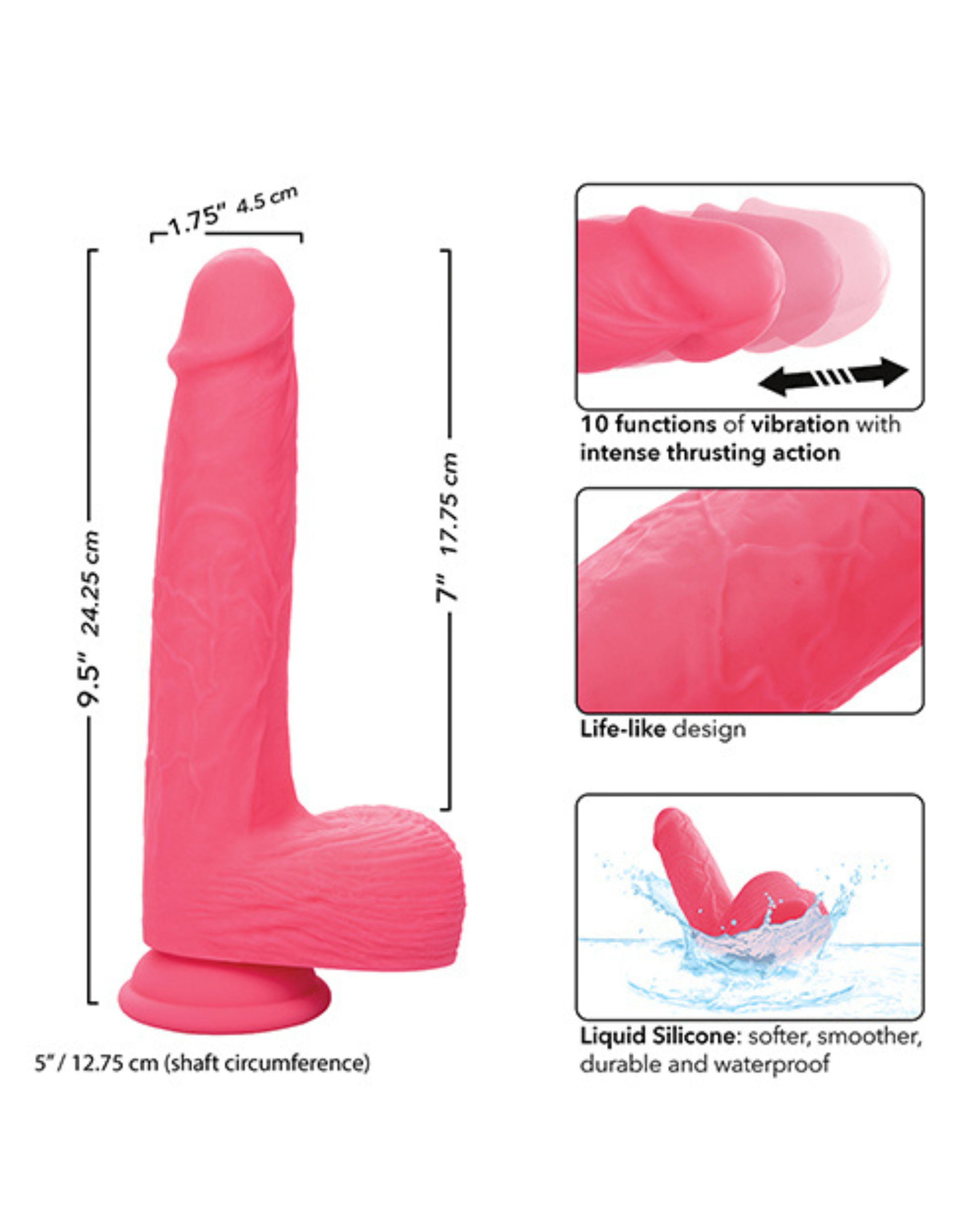 Enjoy immense power with 10 intense functions of vibration, pulsation, and escalation. Each setting offers a new realm of sensation that will keep you coming back for more. The sturdy suction cup base ensures stability and versatility, allowing for hands-free exploration.