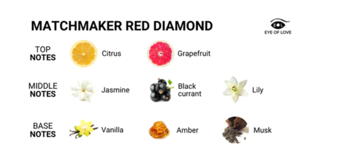 Red Diamond: A sensual blend of jasmine, grapefruit, and amber with a touch of citrus, infused with high-potency pheromones designed to attract him.
