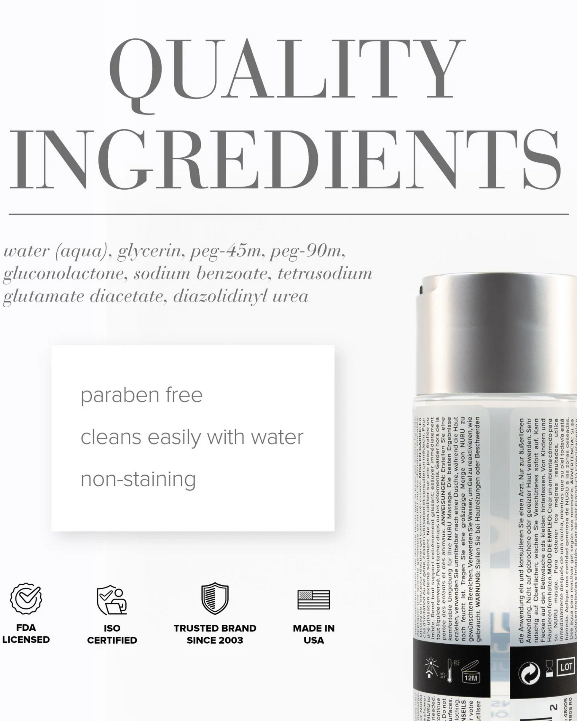 Water (Aqua), Glycerin, PEG-45M, PEG-90M, Gluconolactone, Sodium Benzoate, Tetrasodium Glutamate Diacetate, Diazolidinyl Urea