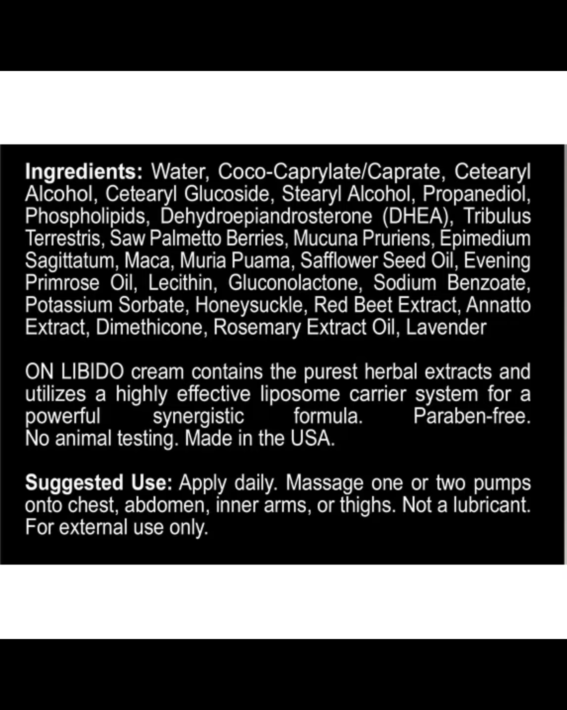 On™ Libido is a Daily Cream that Enhances and Naturally Boosts one's Libido.